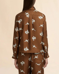 The Ravens Silk Twill Printed Blouse by Marni features a button front placket, button cuffs, and chest pockets crafted with an all-over raven print. Perfect for office wear into happy hour. Material: 100% Silk Woven Details: Silk twill shirt with point collar and long sleeves. Fit: True to size Style it with: Matching trouser for a coordinated set. Style # CAMA0661S1UTSG38RAM29 Made in Italy