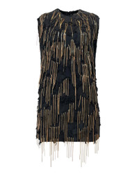 The Corte Dress in Black by Rachel Comey is a sleeveless mini dress featuring fringed embellishments with a round neckline and raw edges.