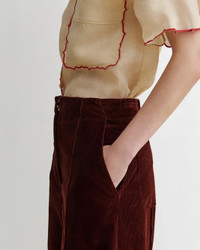 The Lanett Pant in New Midwale Cord in the color Brick by Rachel Comey is a wide-leg tailored trouser that features subtly flared hems, center front and back seams, and cut from luxe stretch corduroy. Pair with The Stable Pullover for the perfect fall look.