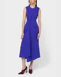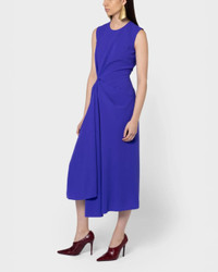 The Almas Dress in Iris Crepe by Roksanda is a sleeveless, mid length dress featuring ruching pinched at the waist with a fluid drape and a-line skirt. - 60% Acetate 40% Polyester - Lining: 73% Acetate 27% Silk - Specialist Dry Clean