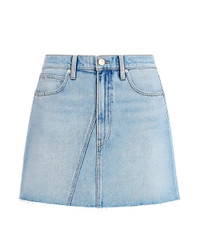 The Karla Skirt in Solo Mission by SLVRLAKE is a mid-length denim skirt featuring exposed seam detailing, finished hem, and structured silhouette. - Crafted from Regenerative Cotton and featured in a classic light stone wash with hand-detailed subtle whiskering for a vintage inspired finish. - Made in USA - Button and concealed zip fastening - Regenerative Cotton® is grown using farming practices that restore soil health, improve biodiversity, and support environmental sustainability. - 100% Cotton - #KARS707S