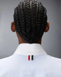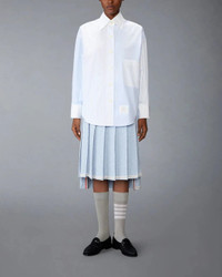 The Poplin Pinstripe Funmix Micro University Striped Supersized Long Sleeve Shirt by Thom Browne is a roomy poplin cotton shirt featuring contrasting stripes in blue and white hues, stitched together in a patchwork form. - Signature striped grosgrain loop tab - Model is 5'10" (178 cm), wearing size 40 - 100% Cotton - Made in Italy - FLL079F-F0917-480