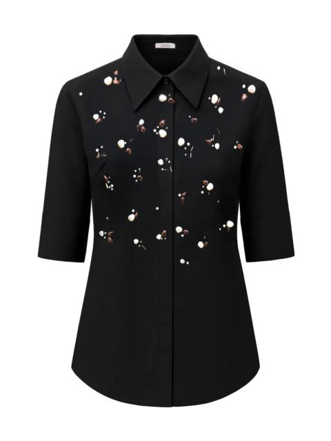 SCARF COLLAR BLOUSE IN PRINTED ORGANIC COTTON POPLIN