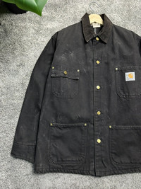 Vintage 90s Carhartt Chore Jacket Rare Collector Items In Excellent Vintage Condition Button Up Jacket. Nice Abstract faded refer pictures PLEASE DOUBLE CHECK YOUR MEASUREMENT Message me with any questions/offer :) Measurements: Length: 28 in. Pit to pit: 22 in
