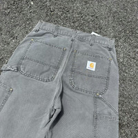 Vintage Carhartt Grey Workwear Pants Rare Collector Items In Excellent Vintage Condition No Holes Got Stain Refer Picture! PLEASE DOUBLE CHECK YOUR MEASUREMENT Message me with any questions/offer :) Measurements: Length: 43 in. Waist : 28-29 in