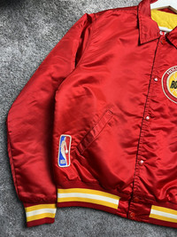 Vtg Rare NBA Houston Rockets Satin Starter Jacket Quilted White Lining Made in USA NBA Basketball Stitched On Logos In Excellent Vintage Condition No Holes or Stains Please Check Your Measurements Measurements: Length: 26.5 in Pit to pit: 26 in