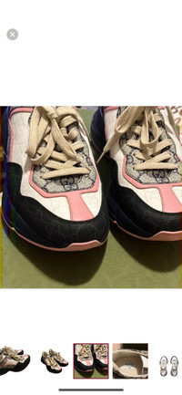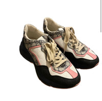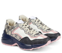 PRODUCT DETAILS Style 692902 UIQ30 1061 Mirroring the material's historic origins, GG Supreme is introduced in a timeless mix of blue and beige for Gucci Love Parade. The canvas has come to the front of each collection decade after decade to become a hallmark of the House. Here, the classic palette defines this pair of Rhyton sneakers. Beige and blue GG Supreme canvas Women's Gucci logo tag Rubber sole Additional pair of laces included Low heel Made in Italy Worn twice