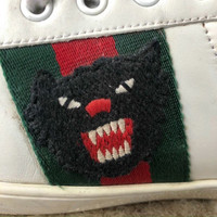 Gucci Ace Panther Embroidered Sneaker. Size 8.5 Gucci fits equivalent 9-9.5 White. Cond 8/10. No longer available and rare to find. Accept decent offers!