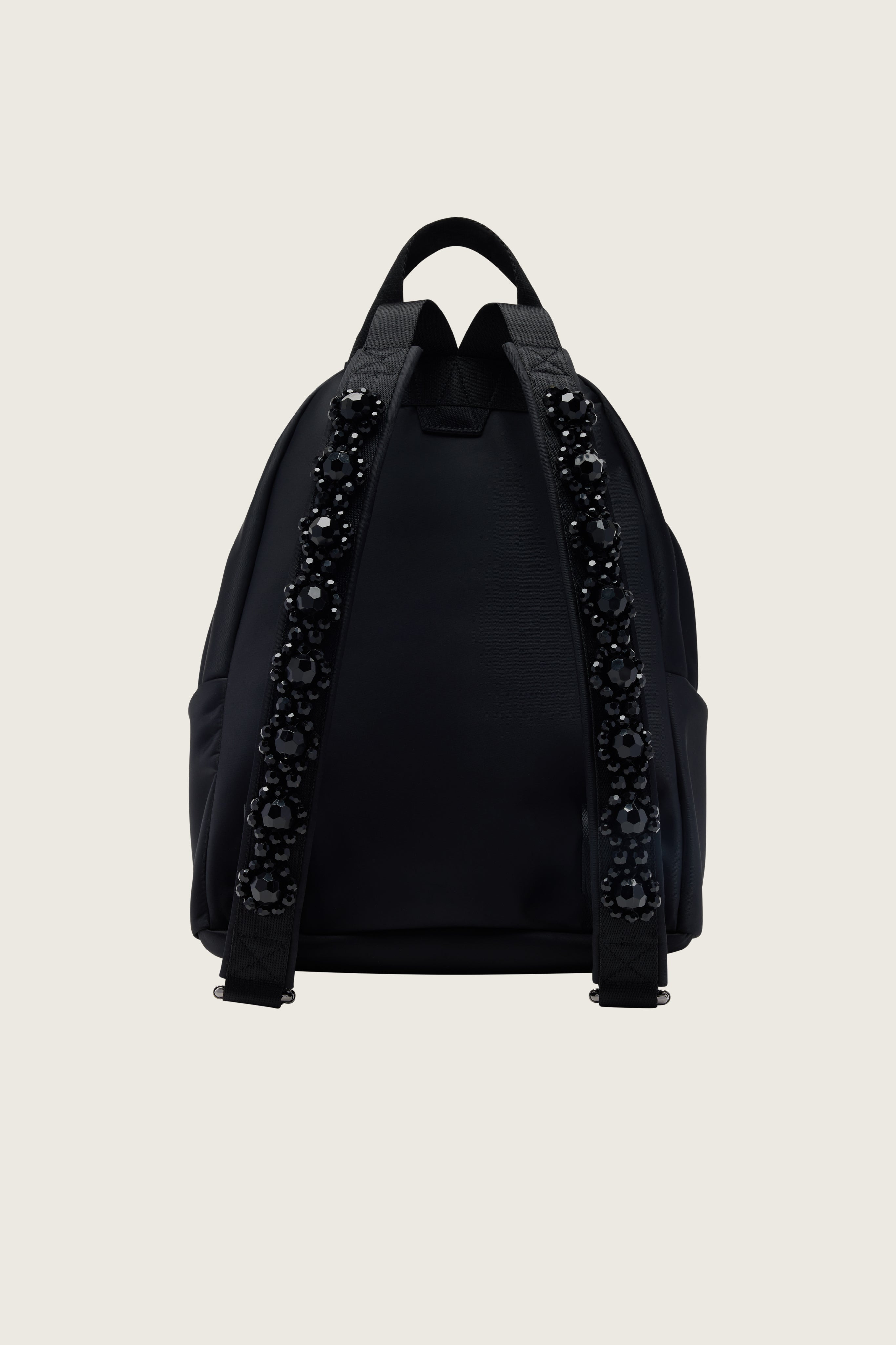 The Beaded Utility Bow Backpack features signature jet black crystal beading, adding a luxurious touch to a bag that can be used every day. The bag also features grosgrain bows at the exterior front pocket. Product Details Nylon backpack - Signature jet beading - Bow detailing - Exterior pocket - Zip closure Composition: Outer: 100% Polyester Lining: 100% Polyester Trim: 100% Polyester (Excluding Embellishment) SKU: BAG179TB 0761 BLACK/JET