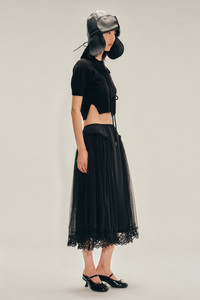 A crepe de chine skirt with an elasticated waistband and a delicate lace-trimmed hem. Tulle frills falling from the hips add texture and volume. Product Details Crepe de chine midi skirt - Elasticated waist - Pockets at side seam - Floral lace trim - Tulle hip detail Composition: SELF: 73%AC 27%SE FRILLS: 100% PA LINING: 100%CU TRIM: BASE: 100%PA THREAD: 100%PL SKU: 3181 0514 BLACK
