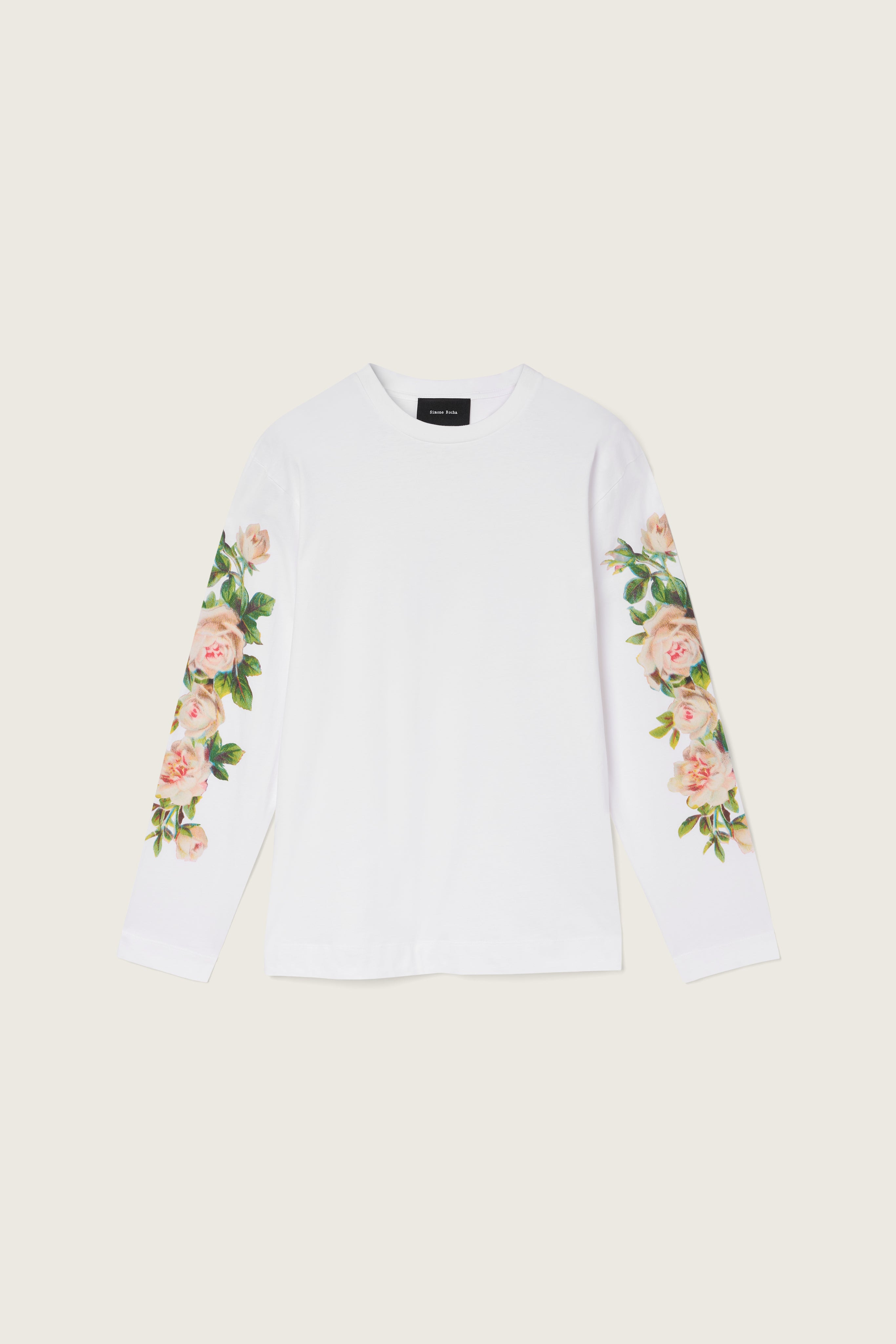 A long sleeve t-shirt featuring rose clusters along the sleeves in our classic unisex t-shirt fit. Product Details Cotton jersey long sleeve graphic t-shirt - Rose flower print on sleeves Composition: 100% Cotton SKU: 5194P52-M 0569 WHITE
