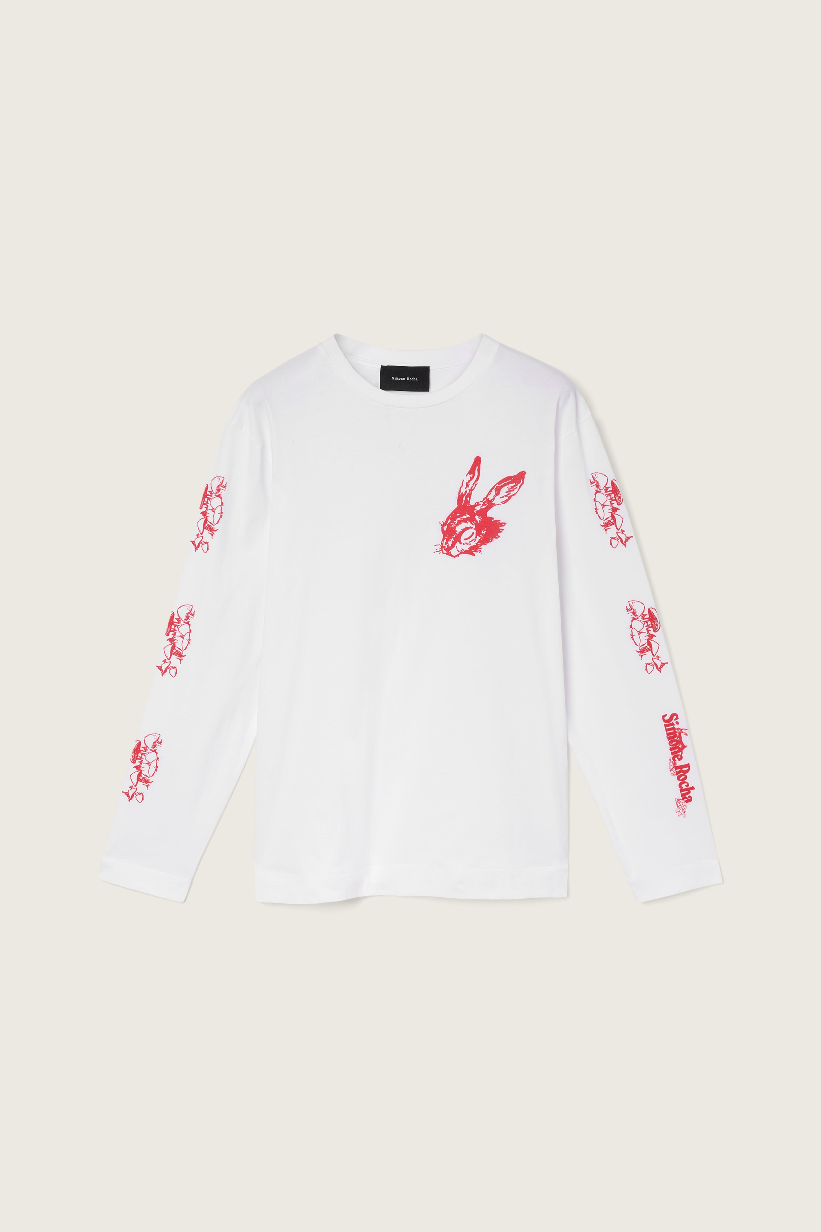 A long sleeve t-shirt featuring a new interpretation of the Simone Rocha logo with narrative illustrations in our classic unisex t-shirt fit. Product Details Cotton jersey long sleeve graphic t-shirt - Artwork by Oscar Torrans Composition: 100% Cotton SKU: 5194P51-M 0569 WHITE/RED