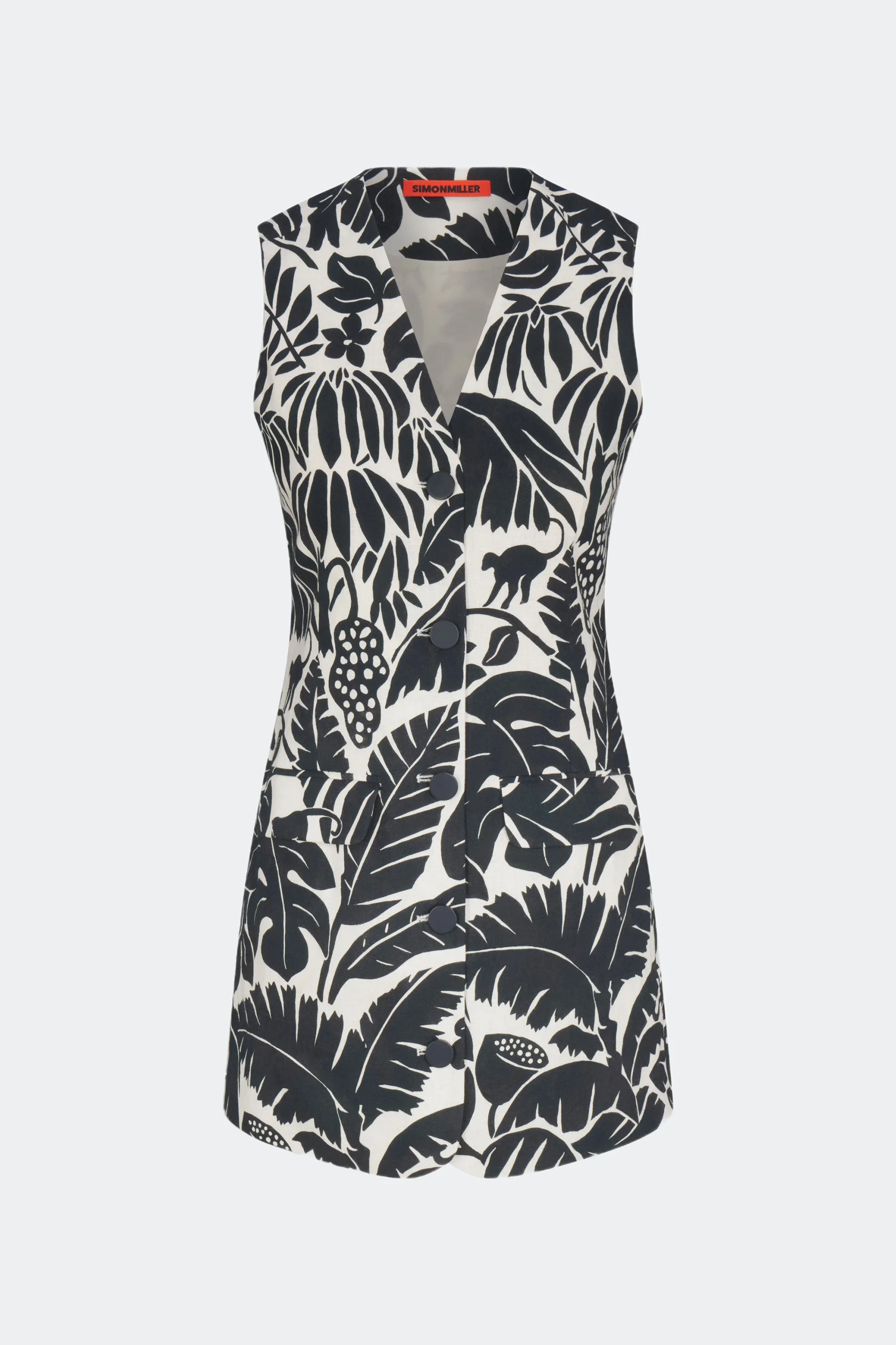 Carob Printed Linen Mini Dress in Black/Macadamia Acapulco Print
