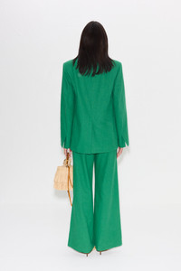 Classic oversized linen blazer. With front pockets and button closure. Fully lined. Wear it as a power suit with the Bloo Linen Pants Color: amazon green DETAILS Model: W6032-3119-86024 SHELL: 55% LINEN / 45% COTTON, POCKET LINING: 100% COTTON IMPORTED SIZING Mireya is 5'10" and wears a size 2 Bust: 33" Waist: 25" Hips: 36"