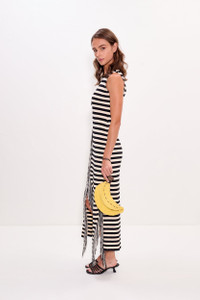 Sabine Fringe Knit Dress in Black/White Stripe