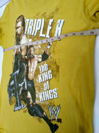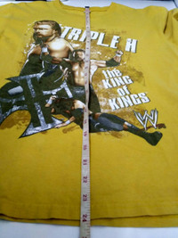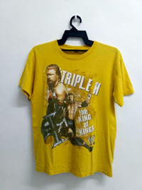 PLEASE READ TERMS & CONDITION BELOW BEFORE BUY Vintage WWF WWE Triple H T-Shirt Wrestling ITEM CONDITION : PRE-OWNED/AUTHENTIC/VINTAGE ============================================= CONDITION : PRE-OWNED WITH A GOOD CONDITON : NO PIN HOLE #Have small stain on the sleeve but does not affect when wear it #PLEASE REFER PICTURE #DONT EXPECT THIS ITEM SAME AS NEW SHIRT MEASURES ABOUT (APPROXIMATELY) (Size: please refer actual measurement given and compare with your best Fiting clothes) # ARMPIT TO ARMPIT : +- 18.5 INCHES # LENGTH(BACK COLLAR DOWN) : +- 24 INCHES # COLOUR : YELLOW # CONDITION : GOOD (LIMITED ITEM) NOTE : (please see the pictures for details) Ship to worldwide All items will be shipped out within 1-3 days after payment received. Usually, it takes about 18 - 24 business days for delivery for all International order. Sometimes, It may take up to 24 working days. It also may take some times to delivered due to Covid 19 disease.However after 30 days your item still not arrive, please contact us immediately. For Holiday Period (eg: Christmas, Chinese New Year and etc), shipping will take longer time to reach. Please be patient when awaiting shipment. PAYMENT PayPal ONLY ***PLEASE GIVE YOUR CONTACT NUMBER AND EMAIL FOR DELIVERY DETAILS All winning buyers are expected to pay within 3 days VISIT MY STORE FOR MORE ITEMS...THANKS