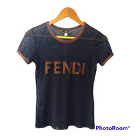 Fendi Big Brown Logo See Tru Mesh T-shirt