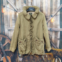 ▪️MEZZO PIANO Ruffle Khaki Hysteric Lined Jacket with Hidden Hood▪️ ⚠️ Read the description carefully before purchase. ▪️DESCRIPTION ▪️Manual Measurement: • Chest : 19 inch • Length : 27 inch ** All measurements are done with the garment lying flat. ▪️Size on tag: Large (Asian) ▪️CONDITION: 8.5/10 ▪️Used, in great condition. ▪️NO rips and NO holes. ▪️Judge pics for any flaws or signs of use. ▪️The colour is slightly different due to lighting. ▪️Refer to pictures for further details. ▪️Shipping Worldwide via: DHL Express/FedEx ▪️All sales are FINAL. ▪️Confirm your size and satisfied the item before purchase. 🚫 NO Return & NO Refund. 🎌 安心して信頼できる売り手から購入する。 •• Thank you for visiting my store. •• Have a nice day.