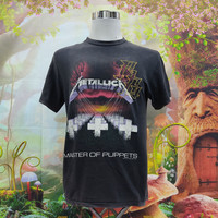💥 Vintage ©1994 Metallica Master of Puppets Distressed Faded T-shirt▪️ ⚠️ Read the description carefully before purchase. 🔹DESCRIPTION ▪️Manual Measurement: - 🧥- Chest : 20 in - 🧥- Length : 27 in ** All measurements are done on a flat surface. ▪️Size on tag: M 🔹CONDITION: 8.5/10 ▪️Used, as it is in good condition. ▪️NO rips, but distressed, faded ▪️Judge picture for signs of wear or marks due to previous use. ▪️The colour is slightly different due to light effect. ▪️Refer to pictures for further details. ▪️Shipping Worldwide ▪️All sales are FINAL. ▪️Confirm your size and satisfied the item before purchase. 🚫 NO Return, NO Exchange & NO Refund❗ 🎌 安心して信頼できる売り手から購入する。 •• Thank you for your visit. •• Have a nice day.