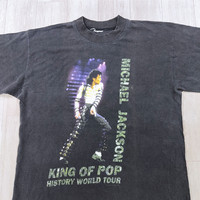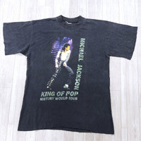 🔥 Vintage!! Faded & Distressed MICHAEL JACKSON King Of Pop 1996 History World Tour T-shirt▪️ ⚠️ Read the description carefully before purchase. 🔹DESCRIPTION ▪️Manual Measurement: - 👕- Chest : 22 in - 👕- Length : 29 in ** Lay flat measurements. ▪️Size manually measured as XL 🔹CONDITION: 8.5/10 ▪️Used, as it is in good condition. ▪️NO rips, NO stains. ▪️1 pinhole at the back (refer pic). ▪️Judge pictures for any signs of previous use. ▪️Kindly refer to pictures for further details. ▪️Shipping worldwide. ▪️All sales are FINAL. ▪️Confirm your size before purchase. 🚫 NO Return, NO Exchange & NO Refund. ⚠️ Collector Item & Not for a FUSSY Buyer. 🎌 安心して信頼できる売り手から購入する。 •• Thank you for visiting our store. •• Have a nice day.