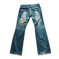 🎌Japanese Brand JACK SERIKA Wings Japan Distressed Denim Flare Jeans▪️ ⚠️ Read the description carefully before purchase. 🔹DESCRIPTION ▪️Manual Measurement: - 👖- Waist : 32 in - 👖- Length : 40 in ** Lay flat. ▪️Size carded as L 🔹CONDITION: 8.8/10 ▪️Used, as it is in good condition. ▪️NO rips & NO pinholes ▪️This pair of jeans has signs of previous use. ▪️The colour is slightly different due to lighting. ▪️Kindly refer to pictures for further details. ▪️Shipping Worldwide. ▪️All sale are FINAL. ▪️Confirm your size before purchase. 🚫 No Return, No Exchange & No Refund. •• Thank you for your visit. •• Have a nice day.