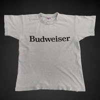 🔥💥 Vintage 80s BUDWEISER Spellout Grey Roundneck T-shirt 🔸 ⚠️ Read the description carefully before purchase. 🔹DESCRIPTION ▪️Manual Measurement: - 👕- Chest : 20.5 inches - 👕- Length : 25 inches ** All measurements are done with the garment lying flat. ▪️Size manually measured as M 🔹CONDITION: 8.5/10 ▪️Used, as it is in good condition. ▪️No major Stains, No Rips and No Holes❗ ▪️There are some signs of wear or marks due to previous use. ▪️The colour might be slightly different due to light and camera effects. 🔸Kindly refer to pictures for actual size measurement & further details. 📦🌐 Shipping Worldwide via: ▪️DHL Express/FedEx (with tracking number) ▪️Shipping process will take 1-3 working days after the payment. 💲💳 Payment method: PAYPAL ▪️All sales are FINAL.❗ ▪️Confirm your size and satisfied the item before proceeding with the purchase. ⚠️ Collectors item & Not for Fussy Buyer❗ 🚫 NO Return, NO Exchange & NO Refund❗ 🎌 安心して信頼できる売り手から購入する。 •• Thank you for visiting my store. •• Have a nice day!😊 ====================================