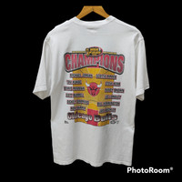 💥Vintage 90s Chicago Bulls - 6 Time NBA Championship 1998 Finals T-shirt▪️ ⚠️ Read the description carefully before purchase. 🔹DESCRIPTION ▪️Manual Measurement: (on flat surface) -👕 - Chest : 19.5 in -👕 - Length : 28 in ▪️Size on tag carded as M 🔹CONDITION: 8.5/10 ▪️Used, as it is in good condition. ▪️Judge pics for any sign of previous use. ▪️Shipping Worldwide. ▪️All sales are final. ▪️Confirm your size before purchase. ‌🚫 No return, No exchange & No refund❗ •• Thank you for visiting our store. •• Have a nice day.