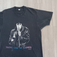 💥 True Vintage & Paper thin - ELVIS PRESLEY Taking Care Of Business ©1987 T-shirt🔸 ⚠️ Read the description carefully before purchase. 🔹DESCRIPTION ▪️Manual Measurement: - 👕- Chest : 21.5 in - 👕- Length : 27 in ** All measurements are done with the garment lying flat. ▪️Size manually measured as: L 🔹CONDITION: 8/10 ▪️Used, as it is in good condition. ▪️Judge pics for any signs of previous use. ▪️The colour might be slightly different due to light and camera effects. 🔸Kindly refer to pictures for actual size measurement & further details. ▪️Shipping Worldwide: DHL Express/FedEx. ▪️All sales are FINAL. ▪️Confirm your size before purchase. 🚫 NO Return, NO Exchange & NO Refund❗ 🎌 安心して信頼できる売り手から購入する。 •• Thank you for visiting our store. •• Have a nice day!