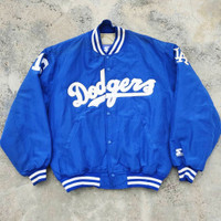 ▪️Vintage 90s STARTER MLB LA Dodgers Nylon Baseball Jacket▪️ ⚠️ Read the description carefully before purchase 🔹DESCRIPTION ▪️Manual Measurement: - 🧥- Armpit to armpit : 26 in - 🧥- Length back collar to hem: 27 in - 🧥- From shoulder to shoulder: 20.5 in - 🧥- Hem (stretchable): 16-20 in ** All measurements are done on the flat surface. ▪️Size on tag: L ▪️Made in USA 🔹CONDITION: 8.8/10 ▪️Used, as it is in great condition. ▪️Cuffs and buttons are excellent. ▪️Judge pictures for any sign of previous use. ▪️Actual colour is slightly different due to lighting. ▪️Please refer to pictures for further details. ▪️Shipping worldwide: DHL Express/FedEx ▪️All sales are FINAL. ▪️Confirm your size before purchase. 🚫 No Return. No exchange or Refund ❗ ✳️Thank you for visiting our store. ✳️Have a nice day!