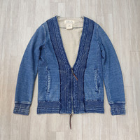 REMY RELIEF Indigo Knitted Zipper Cardigan