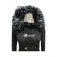 semanticdesign - Semantic Design Racoon Fur Hooded Knitted Sweater Jacket