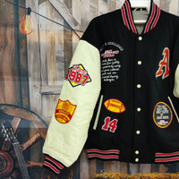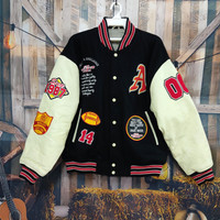🔥 Vintage SUPERDRY Japan Wool with Patches, Cowhide Leather Sleeves Stadium Varsity Jacket▪️ ⚠️ Read the description carefully before purchase. 🔹DESCRIPTION ▪️Manual Measurement: Lay flat - 🧥- Chest : 26 inch - 🧥- Length : 26 inch ▪️Size manually measured as: XL 🔹CONDITION: 8.8/10 ▪️Like new & in very good condition. ▪️NO stains, NO rips and NO faded. ▪️Judge pics for any sign of previous use. ▪️The colour is slightly different due to lighting. ▪️Kindly refer to pictures for further details. ▪️Shipping Worldwide. ▪️All sales are FINAL. ▪️Kindly confirm the size & condition are acceptable before placing your order. 🚫 NO Return & NO Refund. 🎌 安心して信頼できる売り手から購入する。 •• Thank you for your visit. •• Have a nice day.