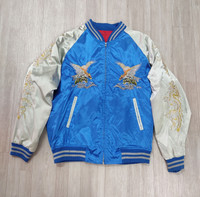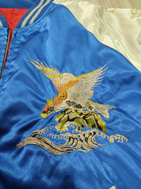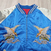 🔥Vintage HOSHIHIME Japan Eagles Dragons Embroidered Satin Sukajan Souvenir Zipper Jacket▪️ ⚠️ Read the description carefully before purchase. 🔹DESCRIPTION ▪️Manual Measurement: ▪️Chest : 26 in ▪️Length : 27 in ▪️Size on tag: 3L (XL/XXL) ** All measurements are done on a flat surface. 🔹CONDITION: 8/10 ▪️Used, as it is in good condition. ▪️Small rips and minor flaws. ▪️Judge pictures for flaws and sign of use. ▪️The colour is slightly different due to lightning. ▪️Kindly refer to pictures for further details. ▪️Shipping Worldwide via: DHL Express/FedEx ▪️All sales are FINAL. ▪️Confirm your size and satisfied the item before purchase. 🚫 NO Return, NO Exchange & NO Refund❗ 🎌 安心して信頼できる売り手から購入する。 •• Thank you for visiting my store. •• Have a nice day.