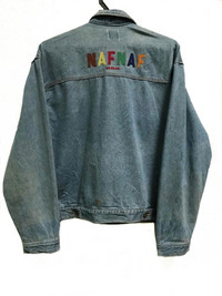 Issey Miyake - Naf Naf Cropped Big Embroidered Logo Rusty Mud Denim Jacket