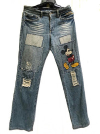 Mickey Mouse - Micky Mouse Patcwork Distressed Denim Pants