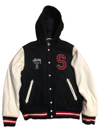 Stussy Hooded Big Embroidered Logo Varsity Jacket
