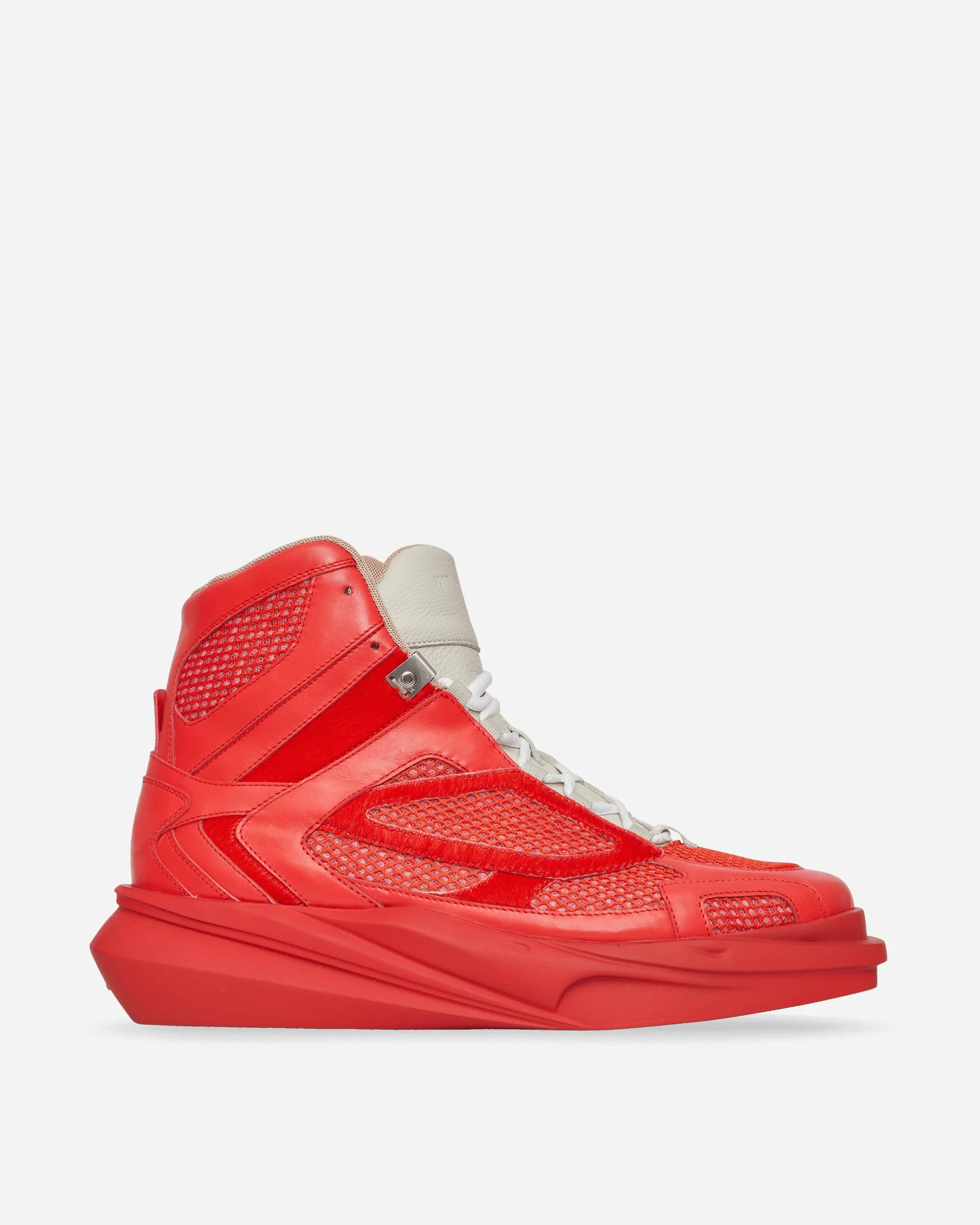 1017 ALYX 9SM High Top Mono Hiking Sneakers Red - Leather Upper - Leather Overlays - Lightercap Detail - Heel Pull Tab - Signature Mono Sole - Made in Italy - Style Code: AAUSN0032LE03 RED0001