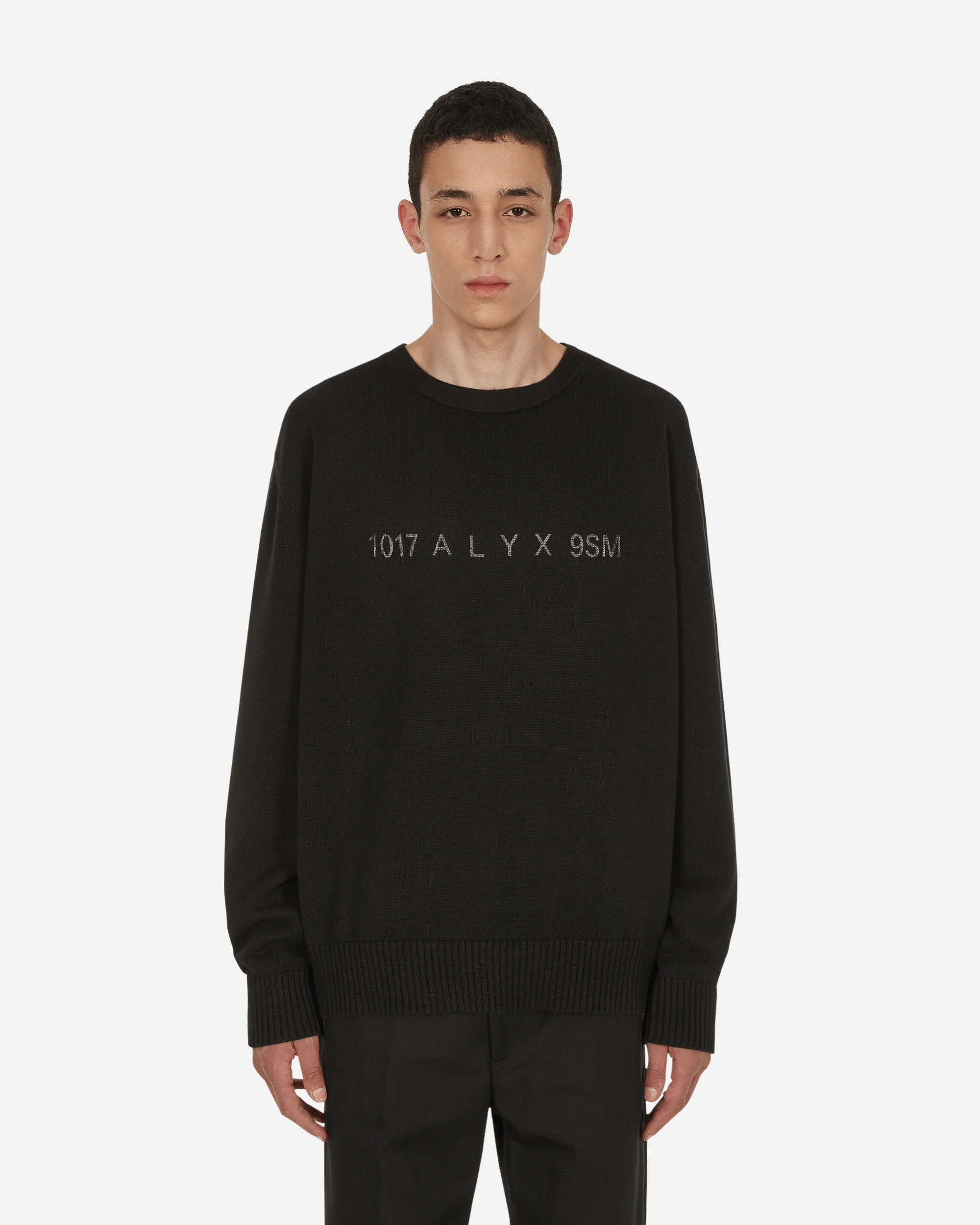 1017 ALYX 9SM Treated Logo Crewneck Sweater Black - 100% Cotton - Relaxed Fit - Ribbed Crewneck, Cuffs and Hem - Logo Printed at Chest - Style Code: AAMKN0122YA01 BLK0001 SIZE & FIT Model is 6ft 1in/1.85m with 34"/83cm chest and wears size M. Measures (Size M): 53cm Shoulders, 63cm Chest, 67cm Sleeve, 73cm Length, 50cm Hem.