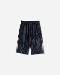 adidas x Willy Chavarria Dazzle Snap Shorts Legend Ink The Chavarria Dazzle Snap Short is elevated in a shiny dazzle fabric providing exceptional comfort. The short is designed with voluminous proportions in the legs. Functional details include an elastic drawstring waistband, two side pockets with zippers, and snap closure along the side of each leg. Branding is symbolized by embroidered double Trefoil logos on the wearer's side of left leg and embroidered Willy Chavarria wordmark on the wearer's side of the right leg. - 100% Recycled Polyester - Shiny Dazzle Fabric - Oversized Fit - Elasticated Drawstring Waistband - Two Side Zip Pockets - Snap-Button Opening at Sides - Embroidered Logo - Style Code: KD1800