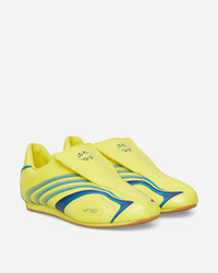 adidas Taekwondo F50 Sneakers Bright Yellow / Bright Blue adidas have dialled it back to 2006 once again. This release takes sporting silhouettes to the streets, merging the F50.6 Tunit with the in-vogue Taekwondo slip-on. Playfully combining the F50's iconic, sleek upper with the slim sole of the Taekwondo, the shoes grab attention in the same way the boots did nearly 20 years ago. Arriving in at least three vibrant colourways – royal blue and white, yellow and blue, purple and lime green. - Leather Upper - Leather Overlays - Synthetic Lining - Gum Rubber Sole - Style Code: JR6026