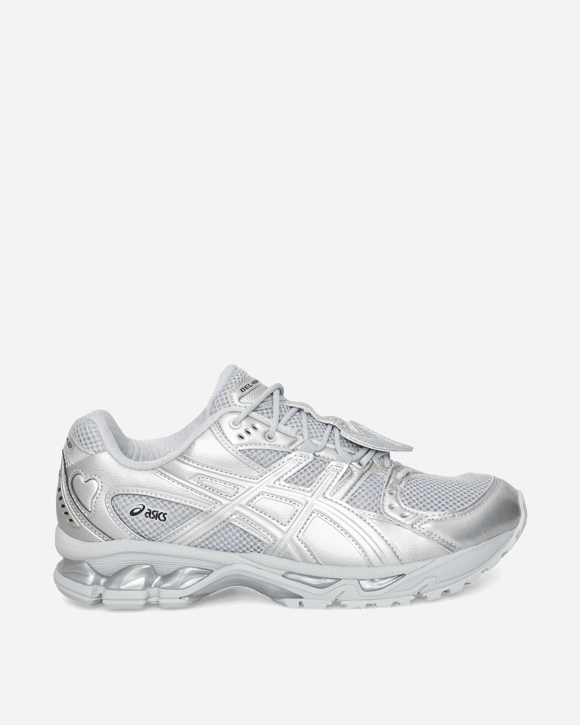 Asics x KIMHĒKIM GEL-Nimbus 10.1 Sneakers Pure Silver The ASICS x KIMHĒKIM GEL-NIMBUS™ 10.1 shoe reimagines GEL-NIMBUS™ 10.1 sneaker silhouette through KIMHĒKIM’s design language. The shoe features subtle heart details and sleek tonal layering, presenting a contemporary take on ASICS’ heritage. - Synthetic Upper - Leather Overlays - GEL™ Technology Cushioning - Rubber Outsole - Style Code: 1203A833-020