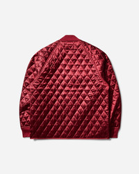 Carhartt WIP Alumni Liner Scarlet The Alumni Liner is made from diamond-quilted polyester satin, featuring a rib-knit collar and cuffs. Two patch pockets appear on the front. Graphic embroidery appears at the chest. - 100% Polyester - Diamond-Quilted Pattern - Ribbed Collar and Cuffs - Embroidered Graphic at Chest - Two Patch Pockets - Style Code: I035146 H8XX