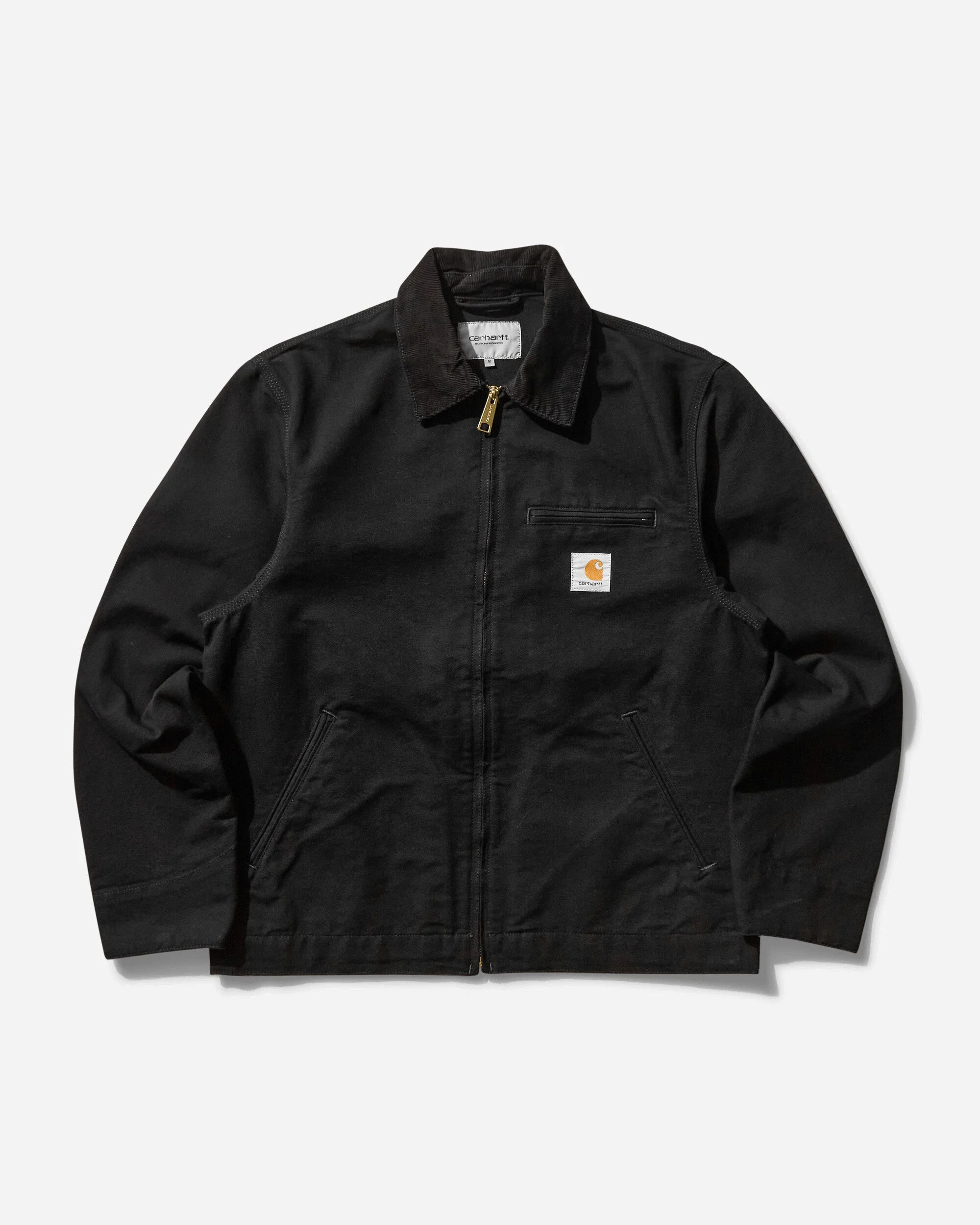 Carhartt WIP Detroit Jacket Black (Rinsed) The Detroit Jacket is constructed from robust Dearborn Canvas and features a poplin lining. It also has a slightly cropped silhouette. A corduroy collar, chest pocket, and gold-tone zip closure offer tactile touches, while triple-stitch details provide extra durability. - 100% Organic Cotton - Dearborn Canvas Fabric - Corduroy Collar - Zip Closure - Zip Chest Pocket - Woven Logo Patch - Two Side Pockets - Adjustable Cuffs and Hem - Style Code: I033112 00E02