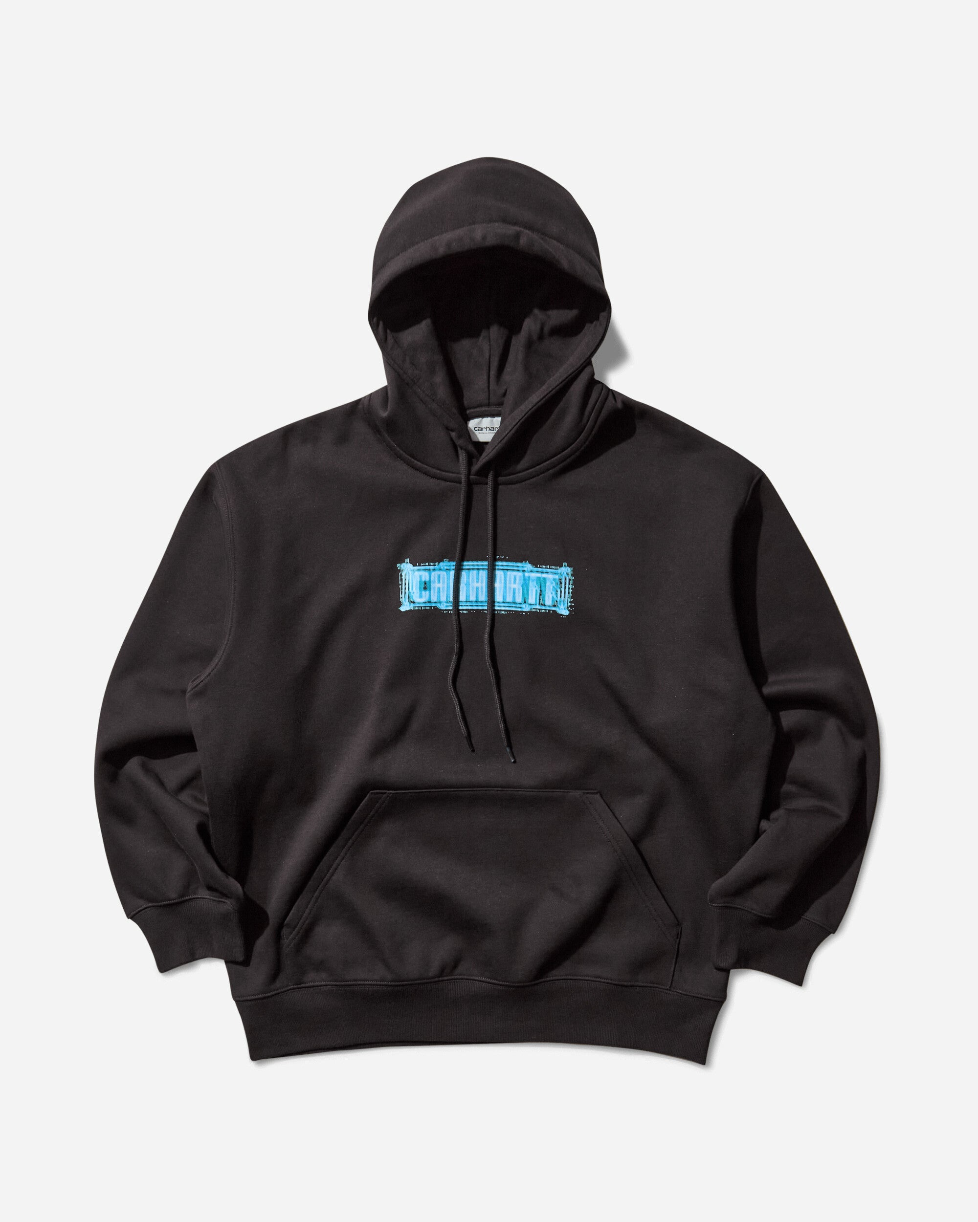 Carhartt WIP Electric Boogie Hoodie Black The Hooded Electric Boogie Sweatshirt is made in a loose fit made from heavyweight polycotton jersey with a brushed, fleece-like backing. The item also has raglan sleeves and flatlock stitching. A graphic print appears at chest and back. - 58% Cotton, 42% Polyester - Loose Fit - Drawstring Hood - Graphic Printed at Front and Back - Kangaroo Pocket - Ribbed Cuffs and Hem - Style Code: I035610 89XX