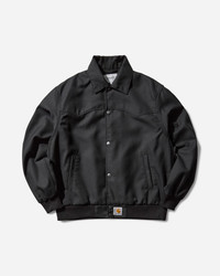 Carhartt WIP Ray Jacket Black The Ray Jacket is made from polyester and wool twill with a poplin lining. The item has a rib-knit bottom band and cuffs. It also features triple-stitched detailing as well as a buttoned front. A woven Square Label completes the design. - 55% Polyester, 45% Wool - Classic Collar - Button Closure - Inside Chest Pocket - Two Side pockets - Square Label - Triple Stitched - Ribbed Cuffs and Hem - Style Code: I035622 8901