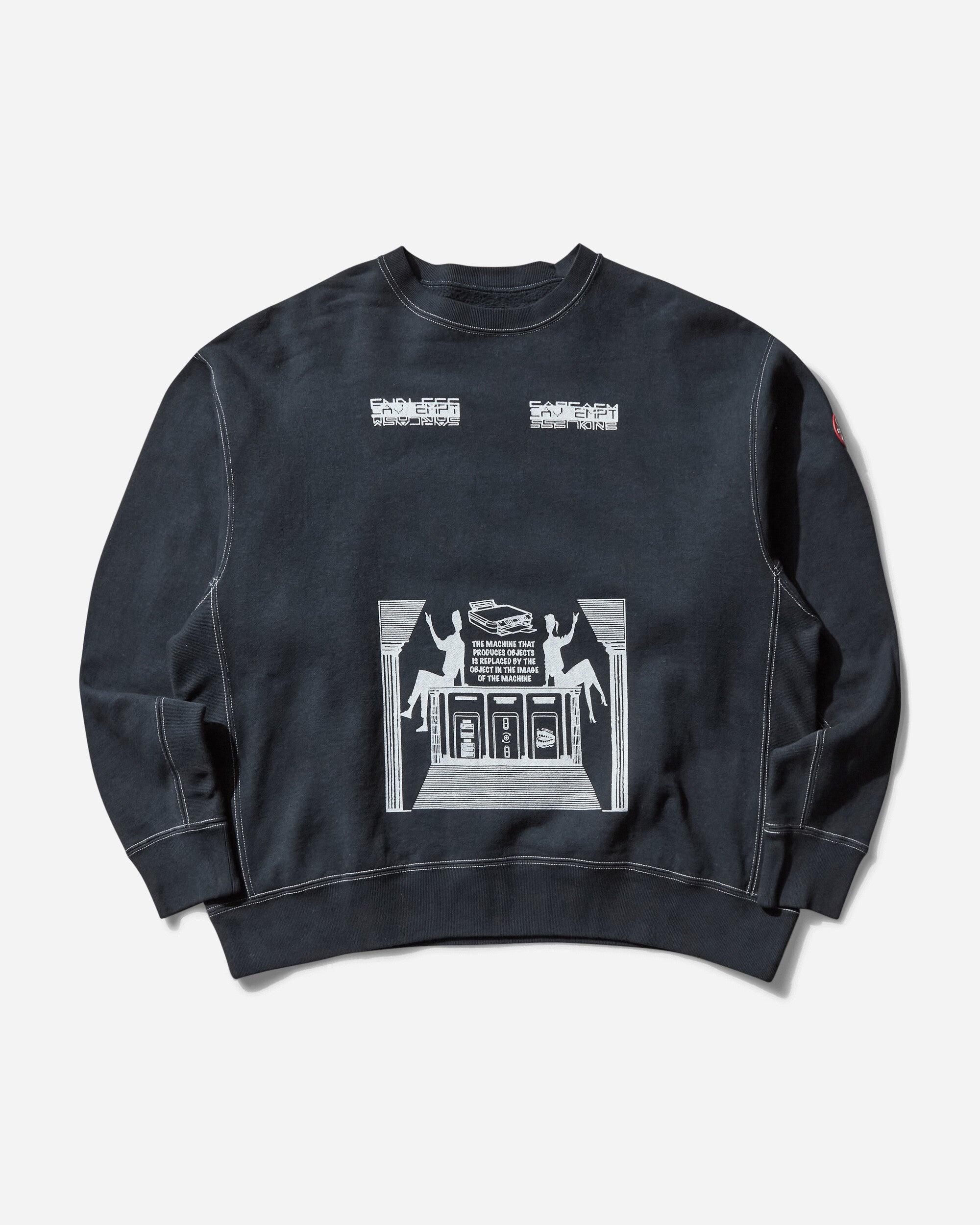 Cav Empt Overdye MD Machines Crewneck Sweatshirt Black Constantly reinventing themselves with graphics and visual concepts that combine music, dystopia, and experimental streetwear, Cav Empt represents the pinnacle of the modern Japanese scene. - 100% Cotton - Garment Dyed - Relaxed Boxy Fit - Ribbed Crewneck, Cuffs and Hem - Graphic Printed at Front - Rubberized Logo Patch at Sleeve - Made in Japan - Style Code: CES27CS08 BLACK