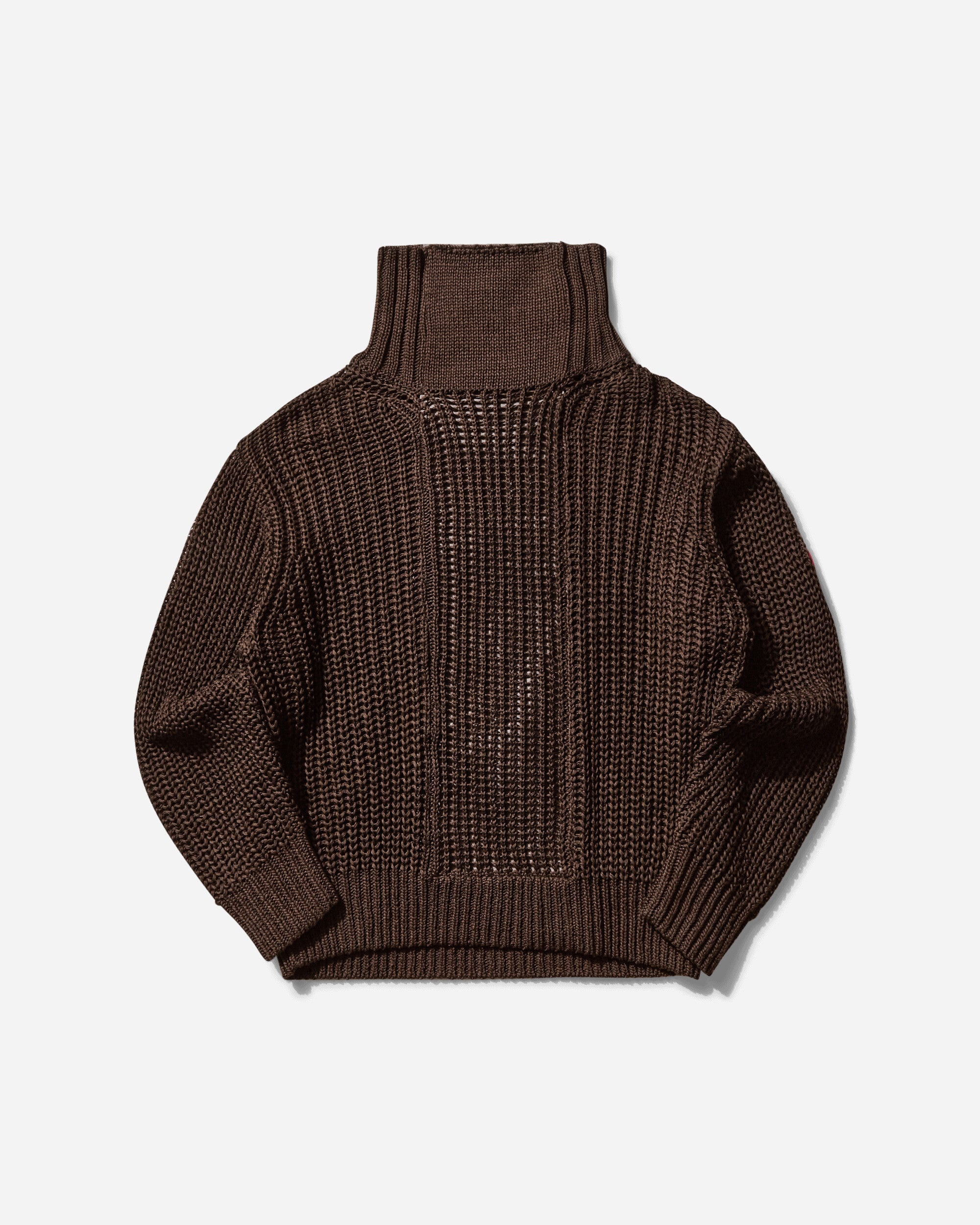 Cav Empt Twill Back Side Knit Sweater Brown Constantly reinventing themselves with graphics and visual concepts that combine music, dystopia, and experimental streetwear, Cav Empt represents the pinnacle of the modern Japanese scene. - 100% Cotton - Loose Boxy Fit - Turtleneck - Patch at Collar and Lining - Rubberized Logo Patch at Sleeve - Ribbed Cuffs and Hem - Made in Japan - Style Code: CES27KN01 BROWN