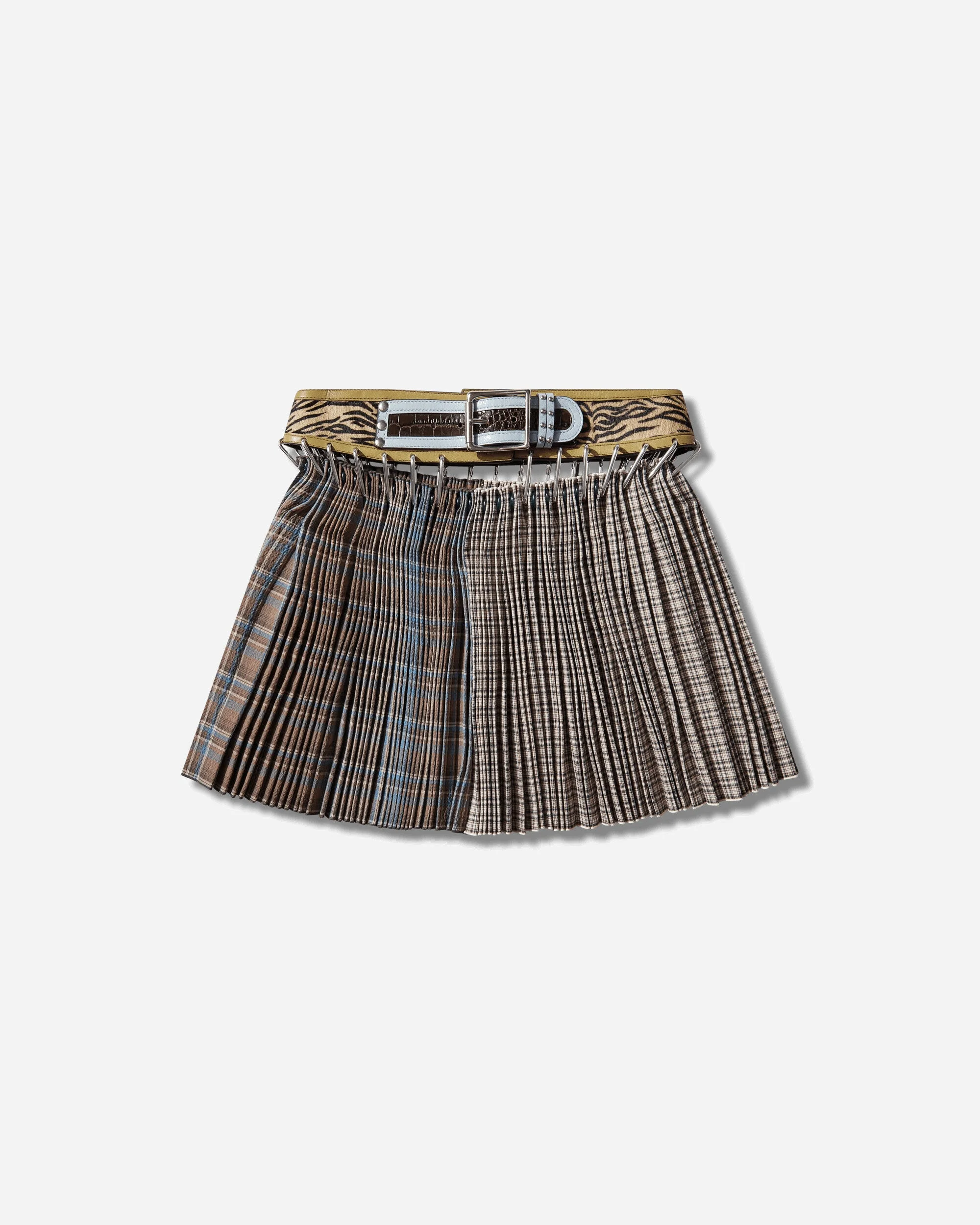 Chopova Lowena Cotton Mini Carabiner Skirt Multicolor Mini carabiner skirt made from pleated cotton with split-colour tartan. The skirt features butterfly belt buckle and adjustable belt with snap fastening closure. - 100% Cotton - Pleated Cotton Fabric - Regular Fit - Carabiner Detailing - Adjustble Leather Belt - Style Code: 3382 MULTI