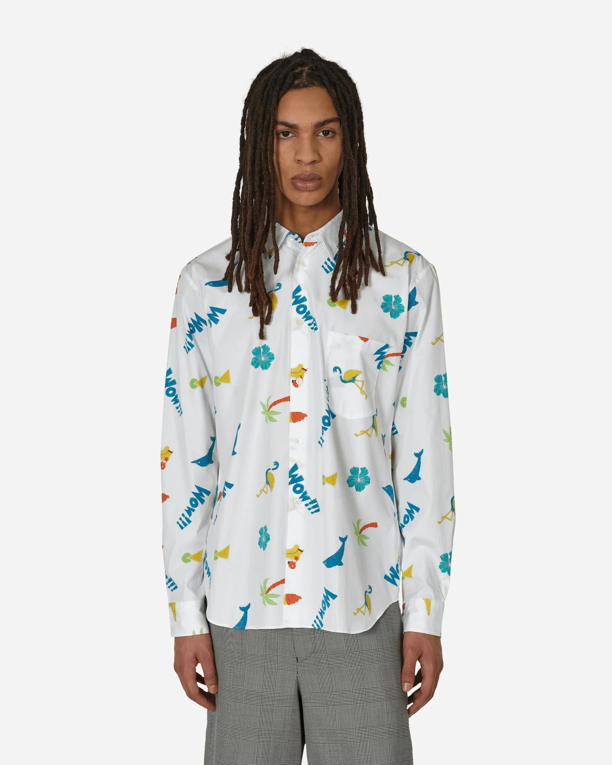 Comme des Garçons HOMME PLUS Printed Longsleeve Shirt White / Multicolor The classic silhouette of a shirt becomes an opportunity to think outside the box in the hands of the Japanese brand. This style features a printed design that never goes unnoticed. - 100% Cotton - All-Over Printed Graphic - Classic Collar - Button Closure - Chest Pocket - SIngle-Button Cuffs - Curved Hem - Made in Japan - Style Code: PM-B014-051 1 SIZE & FIT Model is 6ft 1in/1.86m with 35"/91cm chest and wears size L.