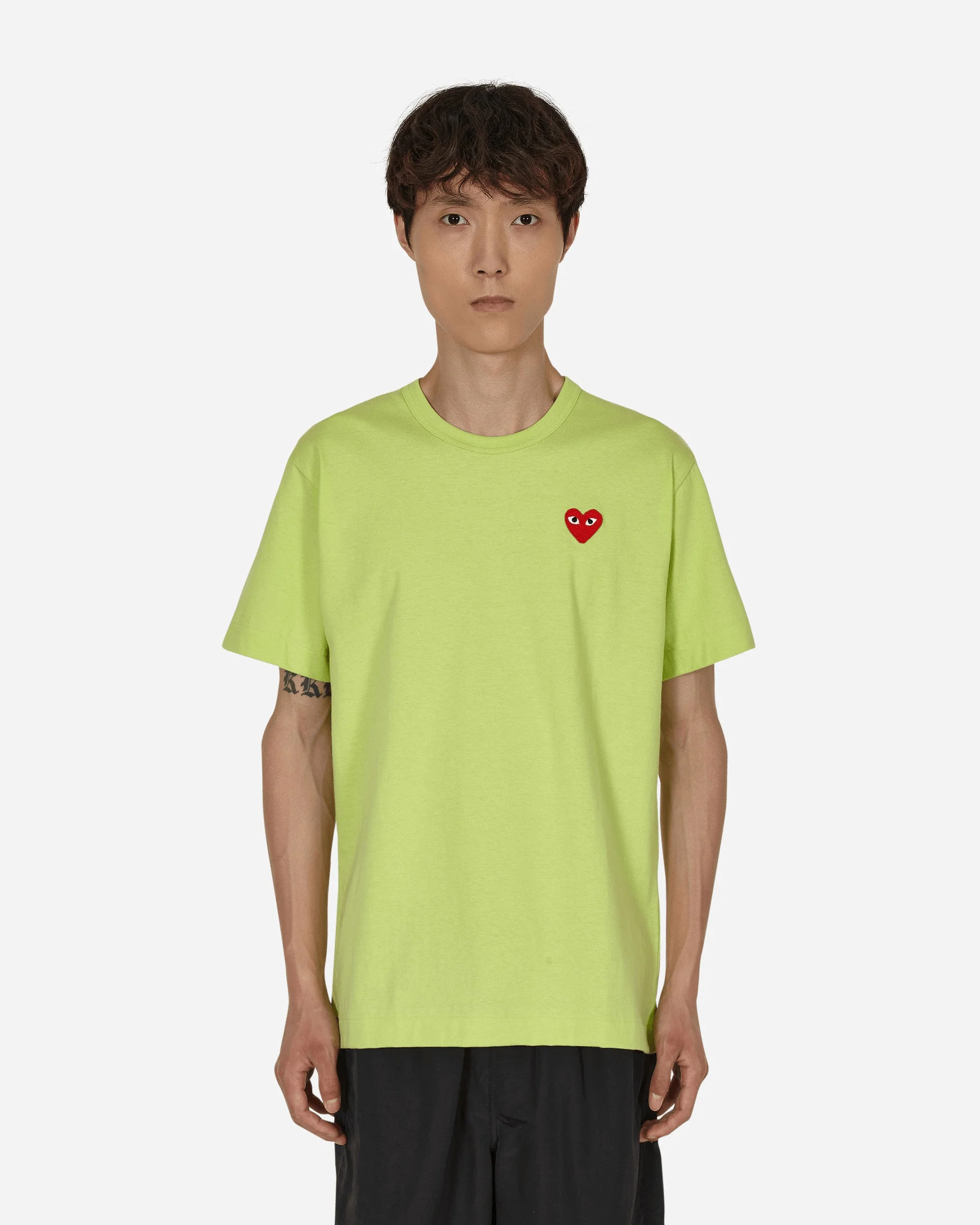 Comme Des Garçons PLAY Heart T-Shirt Green - 100% Cotton - Ribbed Crewneck - Heart Patch at Chest - Made in Japan - Style Code: P1T272 2 SIZE & FIT Model is 6ft 1in/1.86m with 31"/81cm chest and wears size L. Measures (Size L): 48cm Shoulders, 52cm Chest, 20cm Sleeve, 72cm Length, 52cm Hem.